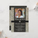 Klassi och modern glitter och band med gemstensfärgat bilder. Personlig, foto och text. glamorös och finare svart och silver mönster med svart satin och faux rhinestone jewel. Ett feminin sött mode-graderingskort för hondjuret, underbart för studentfestens öppna hus eller gradhändelse.