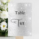 Bordsnumret är skrivet med ett elegant-handskript i stil. Black brev, en faux silver-bakgrund med faux glitter damm, gnistor.