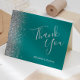Den här eleganten är bröllop tack vare ditt kort en gräns av silver faux glitter på en tealblå bakgrund. Anpassadet kombinerar ord "Tack" i handskriftsskriptet silver grått och namn i briden och trimmen med kursivt teckensnitt.