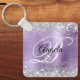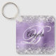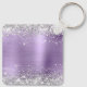 Elegant silver glitter med gnistor mot en faux klassisk ljusbild i lila med borstad bild av metall. Det går att anpassa kalligrafimonogrammet för svart och vitt finare i mitten. All sparsam och glansig inslag i denna moderna gigantiska design är digital grafik. Monogrammed värdefull nyckelring party favors för hennes speciella födelsedag.
