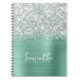Silver Glitter Light Teal Glam skript Namn Anteckningsbok