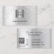 En elegant faux silver tittar bakgrund som dekorerats med faux glitter. Anpassa och lägg till logotyp och text på framsidan. Tillbaka: Mallar för Ditt namn, din titel, mobilt nummer, e-post och webbplats adress, QR-kod. Perfekt för kvinnliga företagare, konsulter, företagsägare.