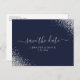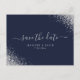 Silver Glitter, marinblått Bröllop spara datum Meddelande Vykort