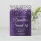 Silver Glitter Mörk Violet Foil Sweet 16 Inbjudningar