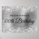 Skapa ditt eget välkomsttecken 24x18 poster för din vän när du är i födelsedagsfest firande. Bakgrunden är en faux sparkly silver glitter med ett grått-borstat metall-folie för digital konst. Alla gnistror, glitter och skuggor skapas med digitalgrafik som skrivs ut som ett foto.
