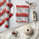 Silver och röda julklappar och glitter, röda armbågar med accenter från guld