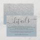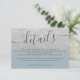 Silver glitter ombre på redigerbara dammiga blå bröllopsdetaljer, med en modern elegant skript kalligrafi.