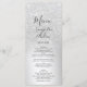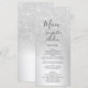 En chic och lyxig silver glitter ombre metallisk folie bröllopsmiddagsmeny med elegant kalligrafi typografi.