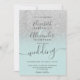 Silver glitter ombre sage green script wedding inbjudningar