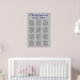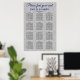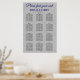 Ett diagram över elegantens sittplatser med en glitter silver-bakgrundsbild med Royal blått och svart typsnitt. Detta vackra sätesdiagram ingår i en matchande bröllop-svit som kan vara helt personlig.
