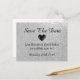 Falskt silverglitter Save the date bröllopskort med vintage väderbitet svart hjärtsymbol. Perfekt för att påminna gästerna om ditt lyxiga och chic bröllop. Personlig information om brud och brudgum med elegant och stilfull script typografi. Fin design med silvrig bakgrundstextur och falska glittrande detaljer. Lyxiga kort.