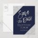 Silver glitter skript marinblå spara datum meddelande vykort