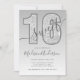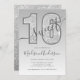Silver Glitter skript Söt 16 Födelsedagsfest inbjudan. Trendigets utformning accentueras med glitter mot en komplex bakgrund. Anpassa anpassad design med egna detaljer.