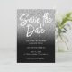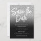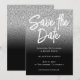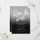 Silvergrå falsk glitter digital konst överlägg på svart för din information om "spara datum" till bröllopet.