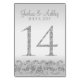Den moderna kortdesignen i bord har faux accents i silver glitter med silver som bakgrund. Perfekt för elegant och modernt bröllop. Bordsnumret går upp till 50.