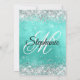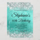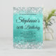 Skapa din egen inbjudan till firandet av finare-snyggten i monogram. Dekorativ faux sparkly silver grått glitter-grafik bildar en top och grund gräns. Den digitala konsten i bakgrunden har en turkos ombre stil-borstad metall-folie. Anpassa inbjudan och färg eller stilar med ett enda teckensnitt. De lyxgnistor, glitter och folie som finns skapas med konstnärligt inslag som skrivs ut som ett foto. Fantastisk 40-årsdag inbjudan för din bästa vän.