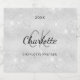 En falsk silver metallisk bakgrund. Dekorerad med falskt glitterdamm. Personifiera och lägg till ett år, förnamn, monograminitialer och fullständigt namn.