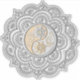 A symmetrical mandala design featuring intricate a yin yang floral pattern in gold and silver.