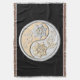 A yin yang symbol is adorned with intricate floral patterns and leaves. The design features a harmonious blend of gold and silver colors.