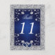 Den här marinblått och FAUX silver grått- och blommigt-vykortet för bordsnummer har ett par tryckt diamantjuvel och FAUX glitter (simulerat) gått med hjärtan på den som matchar den bröllopsinbjudning som visas nedan. ***Du MÅSTE ändra nummer 11 till varje nummer som du behöver, lägga till det i din kundvagn och sedan kom tillbaka och upprepa processaa med varje nummer som du behöver. Kvantitetsrabatter kan gälla gång som du lägger till alla artiklar i kundvagnen. Om du har några frågor kan du skicka e-post till niteowlstudio@gmail.com.