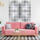 Coolans skuggor av silver, grått och vitt sammanflätning i denna symmetriska abstrakta utformning, som bildar en lattis av ljusröda diamantformer. Bra som överlappar linjer skapar djup och struktur, medan de mjuka övertoningarna ge är ett metalliskt, nästan kristallint skal. Förfinad och modern balanserar biet elegans med geometrisk precision.