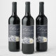 Silver Grått Ivory Blommigt Winter Rustic Bröllop Vinflaska Etikett
