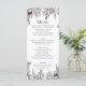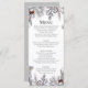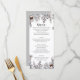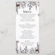 Din menyinformation finns i en ram av vattenfärgade botaniska ämnen som eukalyptus, gräs och löv i silver, rost och grått. Kortets baksida är blek grått