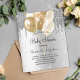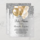 För en babydusch, könsneutral. En faux silver-bakgrund. Dekorerad med faux glitter drops, färgdroppstift och guld-ballonger. Anpassa och lägg till närmare uppgifter om namn i mamma och party. Namn och texten: Baby Shower är skrivet med ett handskript i stil