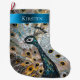 Silver Guld Teal Blue Peacock jul Namn Stor Julstrumpa