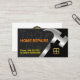 Täcket har en faux silver hammare som bildar en byggnad tak silhuett. Den har en underliggande konstruktion av verktyg för handyman. Över överst finns affärsverksamheten namn "HOME REPAIRS" vid sidan av kontaktuppgifterna. På andra sidan, i ett vitt täckmantel, finns en logotyp i guld-hammaren som du kan använda överst, följt av ditt prestigefyllda namn, kontaktinformation och ett sloganalternativ för att publicera dina tjänster. Ett kreativ-kort för handyman, underleverantörer till använda. #handyman #homerepairaster #building #byggnad #entreprenör #remodeling #buildingingaster #homerepair #interiordesign #homeImprovement #handymanTools #zazzlemade