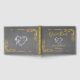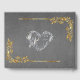 Silver Heart on Grey with Gold Border Guest Book features an intricate silver scroll heart and gold leaves border on a grey background. Room to place the couple's name on the front and names and date on the spine. (Ribbon is simulated in the artwork). Designed to coordinate with the "Elegant Marble, Gold Frame & Heart" Wedding Collection. To change details, click «Personalize». To move the text or change the text size, font, or color click «Click to customize further»