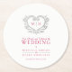 Silver, hjärtbärsröd kransmonogram bröllop underlägg papper rund