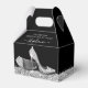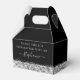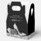 Elegant personlig-festlåda med högklacksskor från silver glitter och en silver faux-gräns med konetti sprinkles på en svart bakgrund och personlig glitter "tack för att du firar med mig", anpassningsbar för en modern och perfektens födelsedag, chic, Quinceañera, bat mitzvah, babydusch eller bachelorette-fest. ANVÄNDA UTFORMNINGSMALLREDIGERAREN om du vill ändra typsnitt, färg och layouten för att skapa en roligt och en unik personlig för dina party gäster.