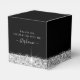 Elegant personlig-fack med kvadratiska partier med högklacksskor från silver glitter och en silver faux-gräns med konetti sprinkles mot svart bakgrund med anpassningsbar tack för din text, glitter för en modern och perfekt födelsedag, chic, Quinceañera, bat mitzvah, babydusch eller bachelorette-fest. ANVÄNDA UTFORMNINGSMALLREDIGERAREN om du vill ändra typsnitt, färg och layouten för att skapa en roligt och en unik personlig för dina party gäster.