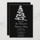 En svart bakgrund i silver julgran. Baksidan av inbjudan är svart med snö mönster