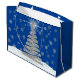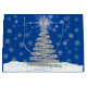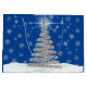 Ge dig en vacker helgdag i silver, med den här utformningen som har en vinterblå bakgrund med Julgran, silver och snöflingor, silver, glitter, silver. Elegant och festlig hemdekoration.