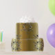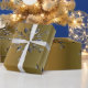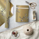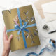 En elegant julbild med en mönster av silver-stjärnor som liknar silver snöflingor på en gyllene bakgrund.