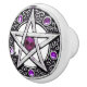 Witchify skåp, enheter och möblemang med dessa härligt & lätt att installera, 1,5" keramiska knoppar för vit som dekoreras med utsmyckade silverpentagrams med purpurfärgade brytningar. Från kök till din badrum är dessa witchy knoppar den perfekta dekorbrytningen för någon witchy babe som älskar & bor #ModernWitchLifen.