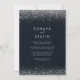 Den här silver konetti-kalligrafin och bröllopsinbjudan på framsidan är perfekt för ett rustiskt bröllop. Den enkla utformningen och utformningen av eleganten har skripttypografin klassisk och finare i med blå bakgrund och silver konetti. Spara papper genom att på baksidan av inbjudan ange mer information i stället för på ett separat visitkort.