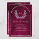 Akta dina gäster med elegant bröllop Spara datumet med vackra silver löv gren. Lägg bara till din händelseinformation på den här lättåtkomliga mallen och lägg till det här kortet med ditt favoritfoto för att göra det till ett slags Spara datumkort.