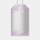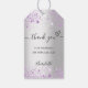 Falsk silverbakgrund dekorerad med lavendelfärgade gnistor. Med texten: Tack för att du delade vår speciella dag, med ett litet hjärta. Personliggör och lägg till era namn.