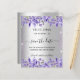 En modern och elegant Spara datum för ett bröllop. En faux silver tittar bakgrund som dekorerats med vattenfärgade lavender-blommor. Anpassa och lägg till ett datum och din namn. Texten: Spara datumet skrivs med ett stort trendig-handskript i stil. Bakåt: violett bakgrund 1 lakan = 1 sparar datumet som skrivs ut kant till kant.
