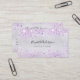 En elegant och ett glamoröst affärskort på ett ljust ansikte silver tittar bakgrund som dekoreras med lavender faux glitter drop på framsidan. Elegantens svarta handskript i stil. Anpassa och lägg till namn, titel, mobilt nummer, e-postadress och webbplatsadress.