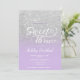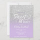 En modern duschmunk i söt faux silver glitter med lila färg block Sweet 16 födelsedagsfest inbjudan med elegant typografi med lila mönster. Perfekt för en prinsessa Sweet sixteen.