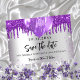 Ett giftigt och trendig Spara datum för en 18:e (eller någon annan ålder) födelsedagsfest. En faux silver tittar bakgrund som dekorerats med lila faux glitter och ballonger. Anpassa och lägg till datum och namn/ålder. Texten: Spara datumet skrivs med ett stort trendig-handskript i stil.