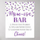 Momosa pub-skylten poster för babydusch i vitt, mörk lila och silver konetti mönster med handskrivna stil-bokstäver. Perfekt för babyduschar och baby sprinkle.