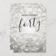 Elegant Glam Silver Glitter Ljus 40:e födelsedagsskriptmallen med party program och menytext, glitter ljus och modernt typografiskt skript.