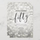 Elegant Glam Silver Glitter Ljus 50:e födelsedagsskriptmallen med party program och menytext, glitter ljus och modernt typografiskt skript.
