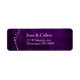 Denna vackra återvändandeadressetikett i tonerna silver och lila kommer att ge ge en känsla av elegans till era utskick från bröllop. Den lämnat fronten har en graciös silver-virvelformad med några löv. Din text finns i silver vid bildens höger. Allt placeras på en fantastisk djup gradientbakgrund som nästan verkar blinka i lila. De här etiketterna matchar bröllopsinbjudningarna med samma titel i vår butik.