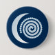Graderad, silvrig måne åtföljd av ett spiral-nyp av ljus, på mörk blått bakgrund av himlar på kvällen